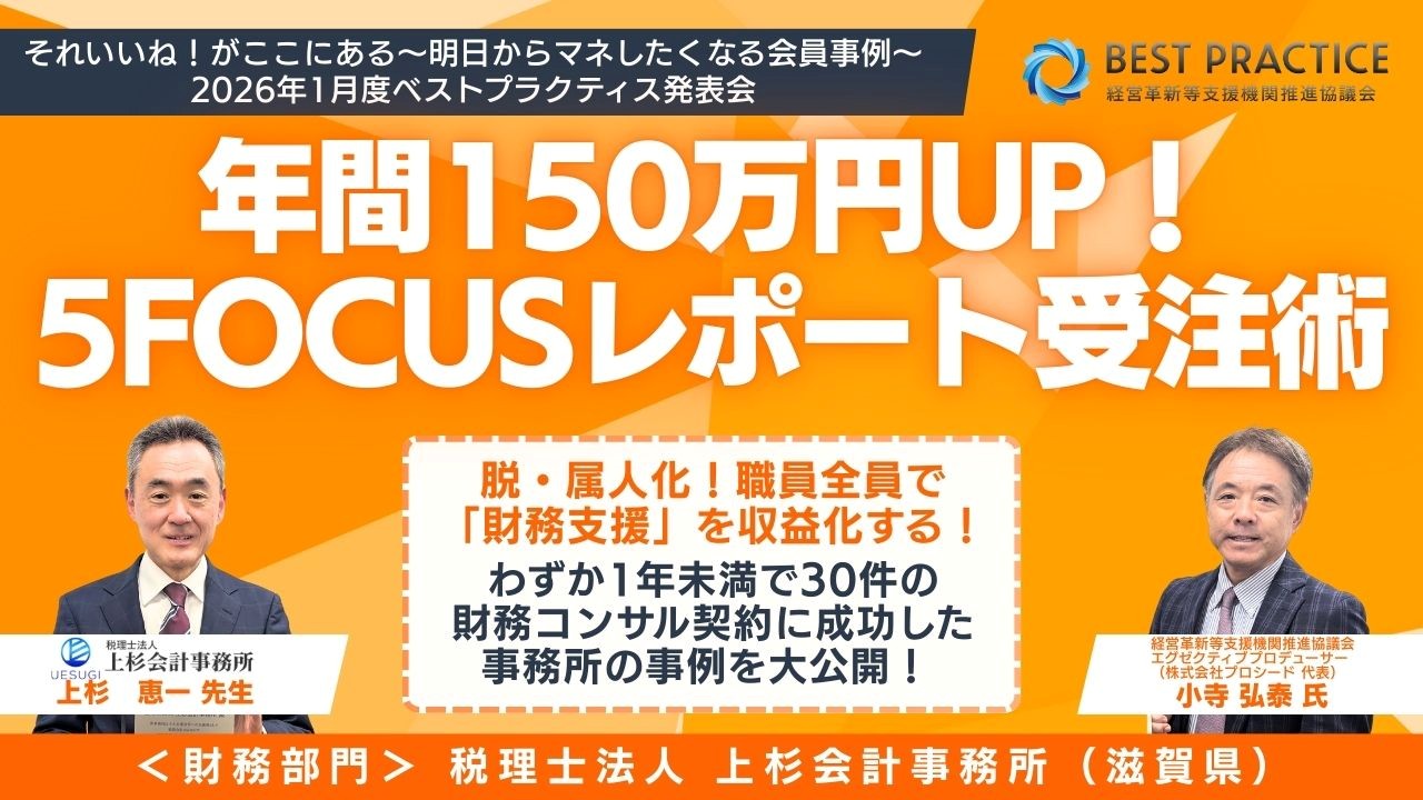 株式会社エフアンドエム(本社:大阪府吹田市、代表取締役社長:森中 一郎)が運営する「経営革新等支援機関推進協議会」(以下、推進協議会)は、2026年1月度の「ベストプラクティス賞」の受賞事務所として、滋賀県の税理士法人 上杉会計事務所(代表社員:上杉 恵一 氏)を選出しました。
