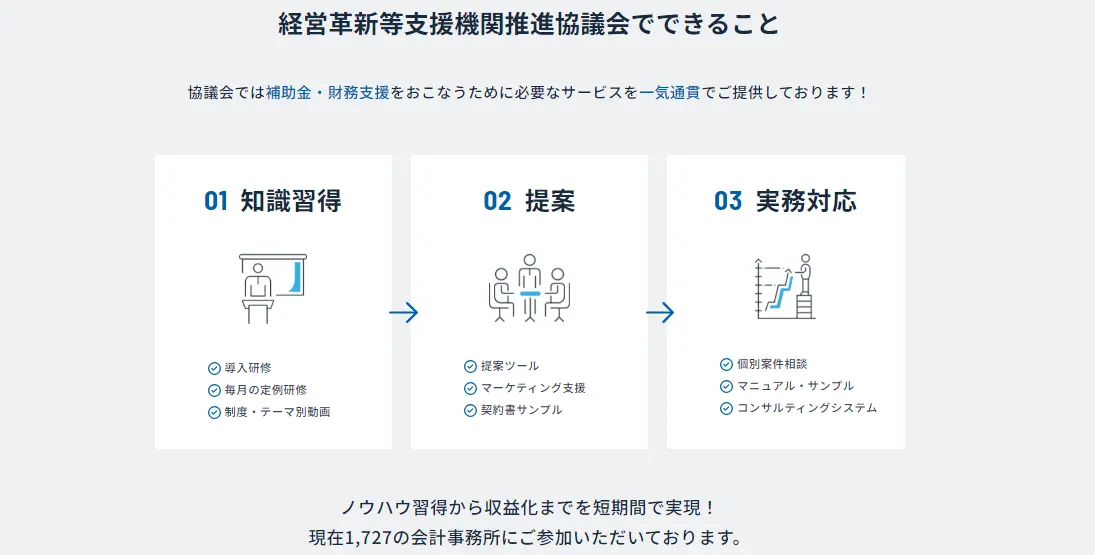 経営革新等支援機関推進協議会は、株式会社エフアンドエムが運営する会計事務所向けの支援団体です。「中小企業経営力強化支援法」に基づく「経営革新等支援機関」に認定された会計事務所の活動を、研修会や各種フォーマットによるノウハウと仕組みの提供を通じて、全面的にバックアップします。